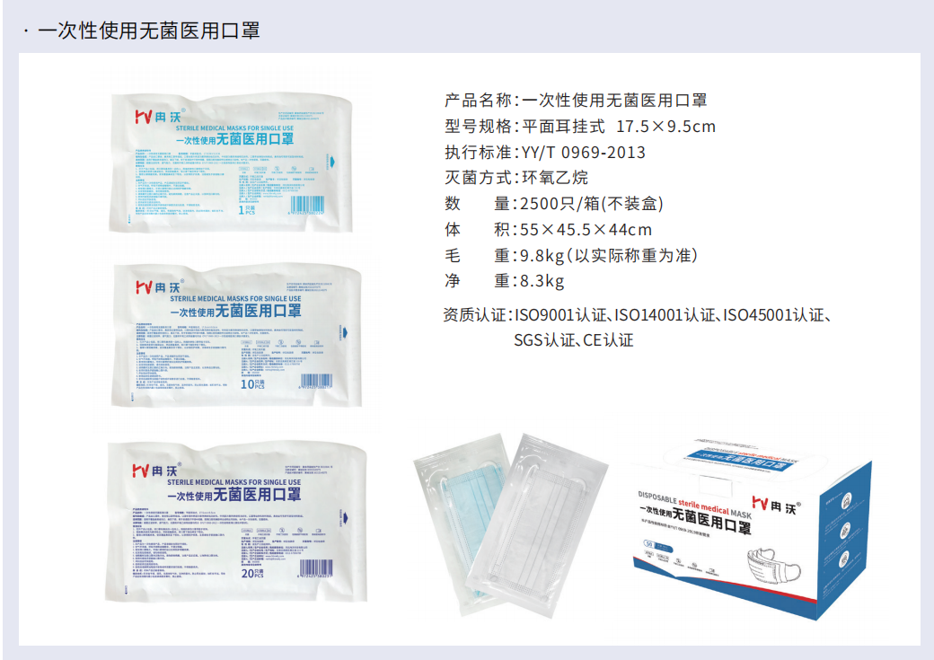 冉沃一次性使用无菌医用口罩2500只/箱