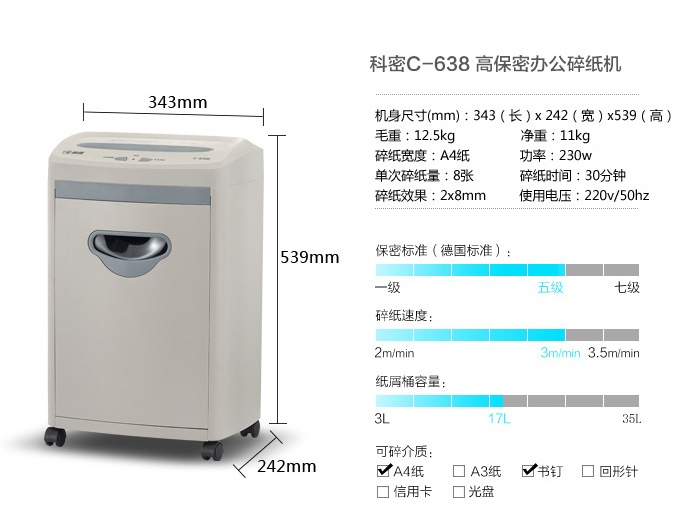 当前位置: 首页 > 办公设备 > 碎纸机 > 碎纸机 > 科密(comet)C-638